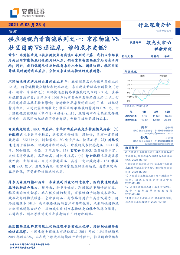 【安信证券】【20210323】供应链视角看商流系列之一:京东物流VS社区团购VS通达系,谁的成本更低?-22页