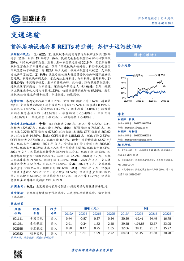 【国盛证券】【20210328】交通运输行业周报:首批基础设施公募REITs待注册;苏伊士运河被阻断-20页