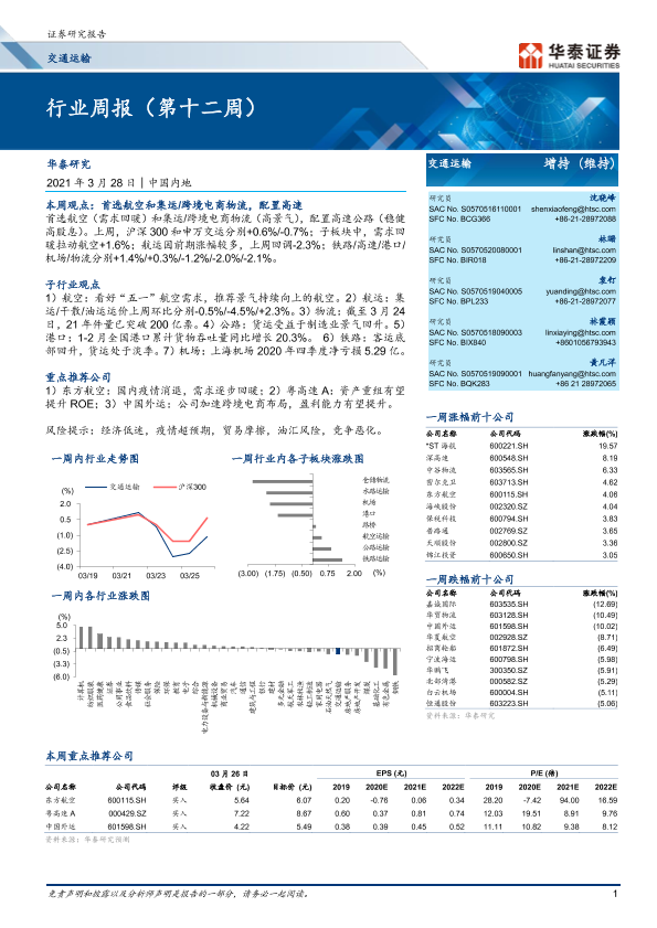 【华泰证券】【20210328】交通运输行业周报(第十二周)-10页