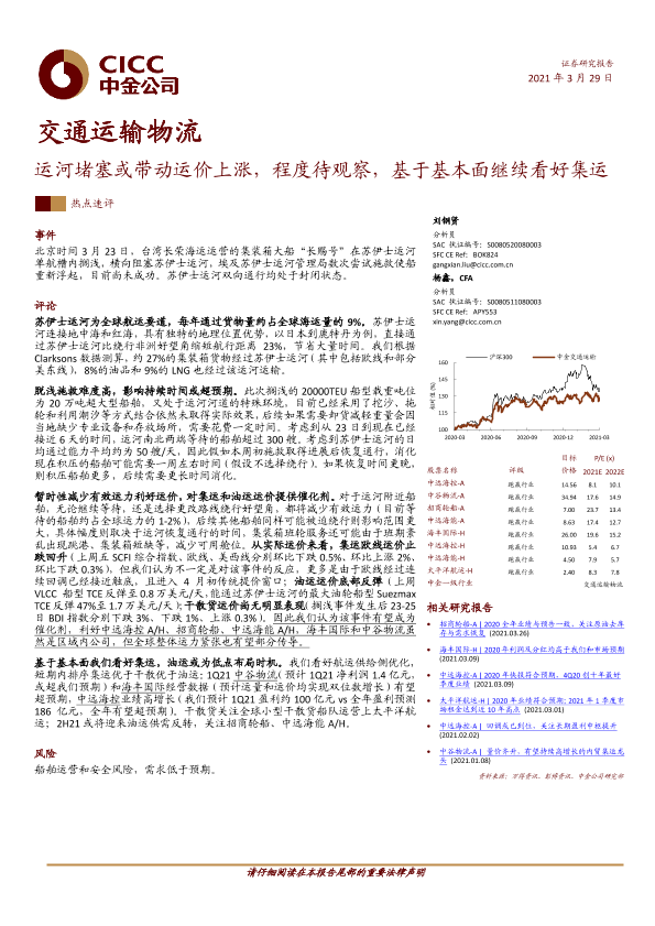 【中金公司】【20210329】交通运输物流行业:运河堵塞或带动运价上涨,程度待观察-4页