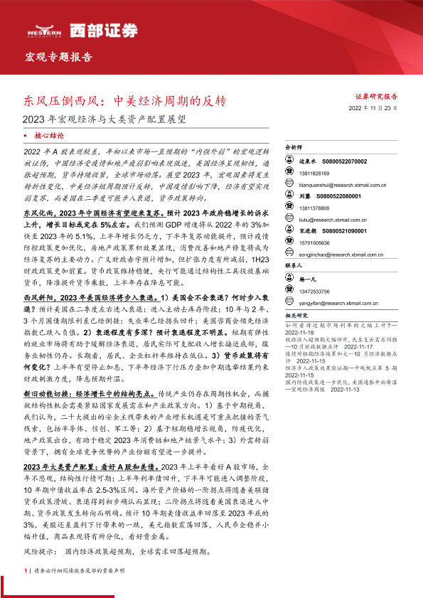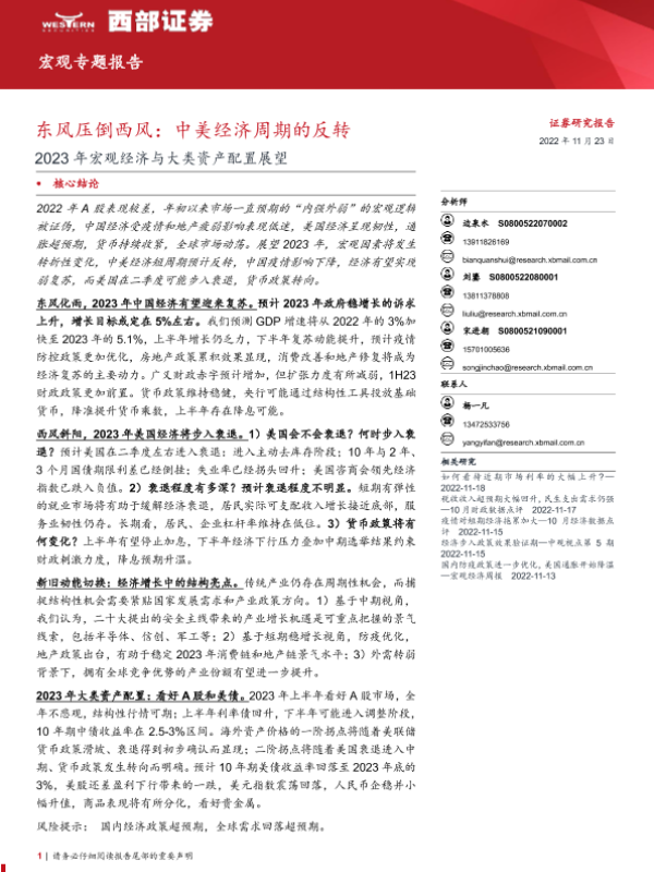 【西部证券】【20221123】2023年宏观经济与大类资产配置展望:东风压倒西风,中美经济周期的反转-48页