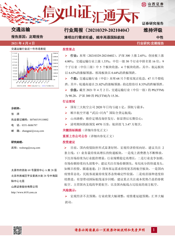 【山西证券】【20210404】交通运输行业周报:清明出行需求旺盛,顺丰再添国际航线-15页