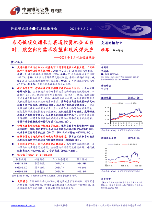 【银河证券】【20210402】交通运输行业2021年3月行业动态报告:布局低碳交通长期赛道投资机会正当时,航空出行需求有望出现反弹效应-40页