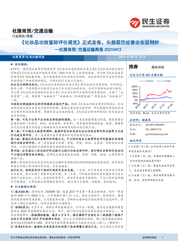 【民生证券】【20210412】《化妆品功效宣称评价规范》正式发布,头部规范经营企业迎利好-12页