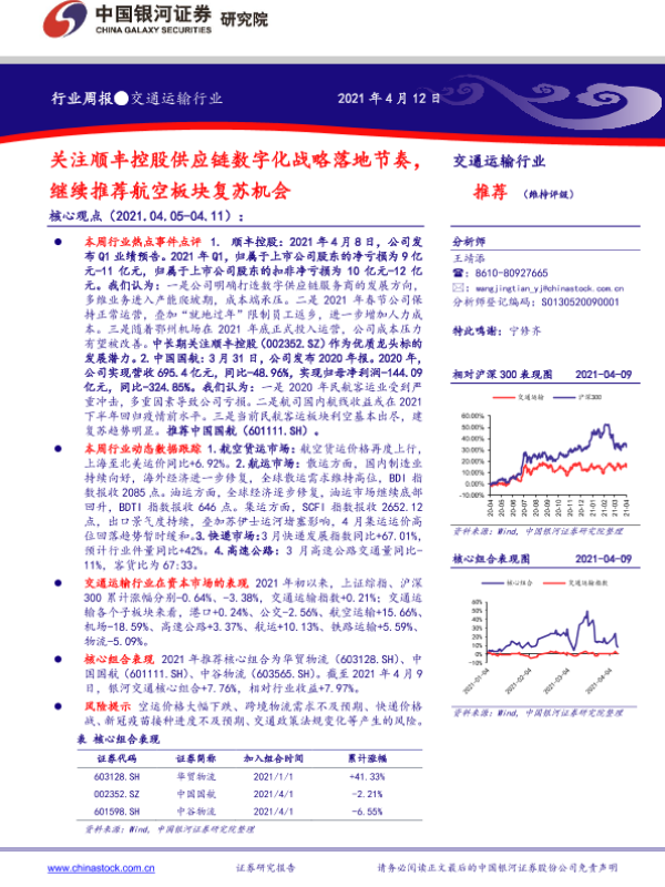 【银河证券】【20210412】交通运输行业周报:关注顺丰控股供应链数字化战略落地节奏,继续推荐航空板块复苏机会-20页