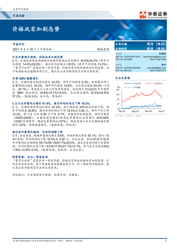 【华泰证券】【20210420】交通运输行业:价格战有加剧态势-6页