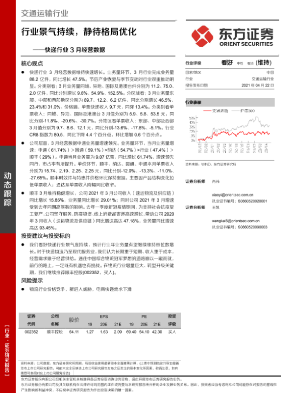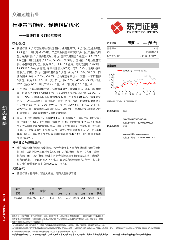 【东方证券】【20210422】快递行业3月经营数据:行业景气持续,静待格局优化-6页