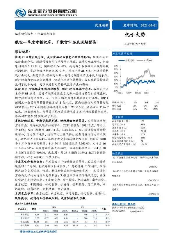 【东北证券】【20210501】航空一季度亏损收窄,干散货市场表现超预期-16页