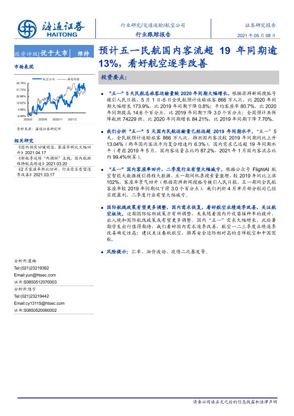 【海通证券】【20210508】预计五一民航国内客流超19年同期逾13%,看好航空逐季改善-3页