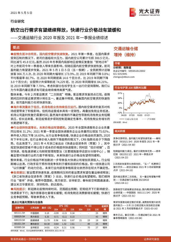 【光大证券】【20210506】交通运输行业2020年报及2021年一季报业绩综述-14页