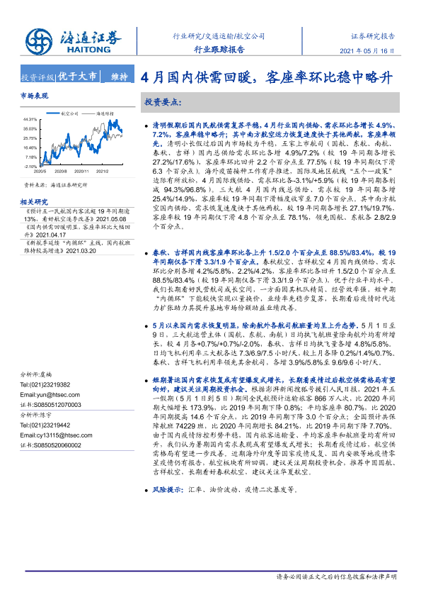 【海通证券】【20210516】4月国内供需回暖,客座率环比稳中略升-4页