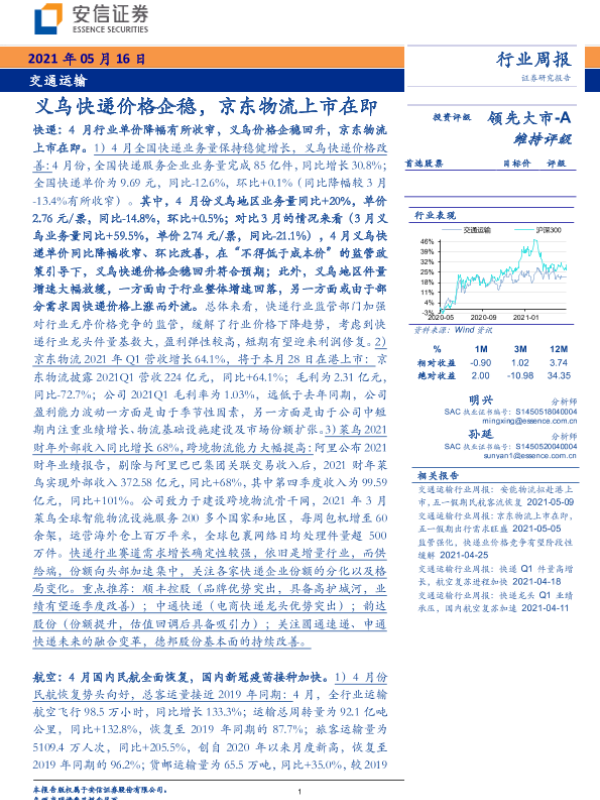 【安信证券】【20210516】义乌快递价格企稳,京东物流上市在即-17页
