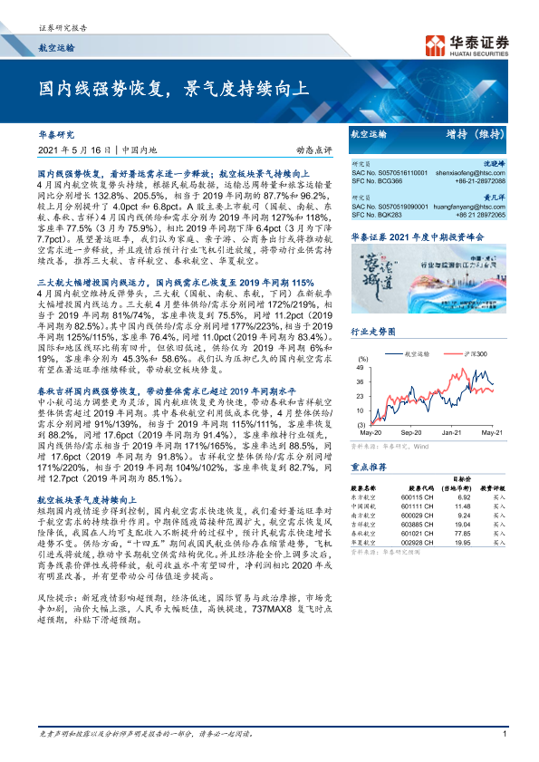 【华泰证券】【20210516】航空运输行业动态点评:国内线强势恢复,景气度持续向上-7页