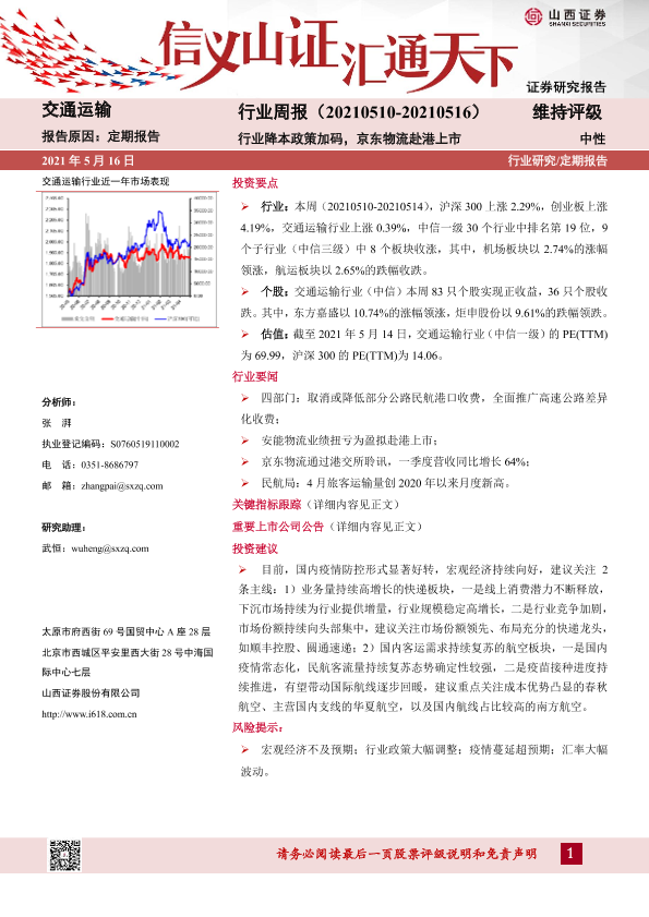 【山西证券】【20210516】交通运输行业周报:行业降本政策加码,京东物流赴港上市-14页