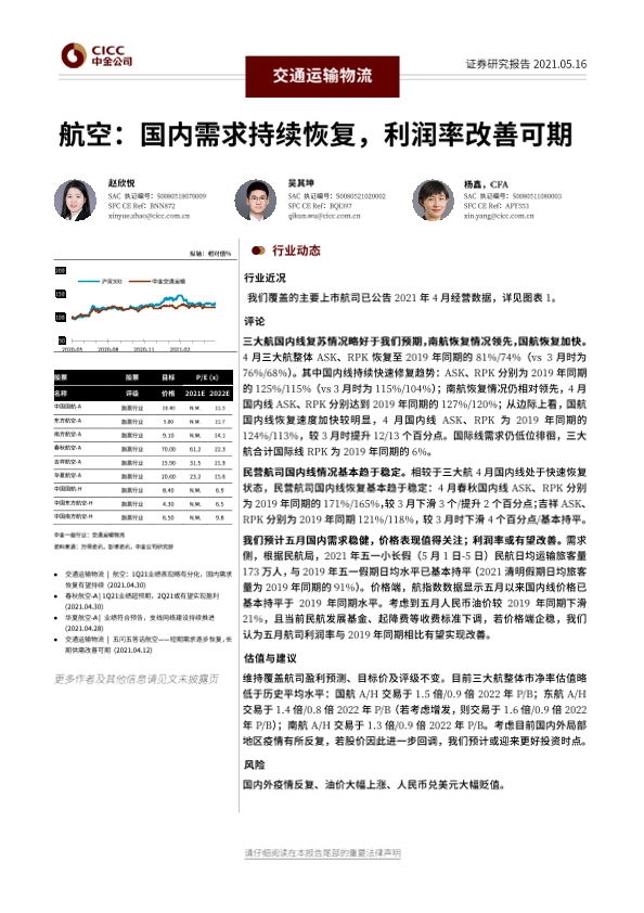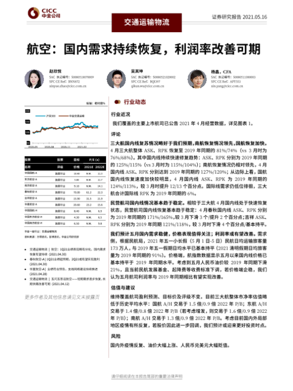 【中金公司】【20210516】交通运输物流:航空:国内需求持续恢复,利润率改善可期-8页