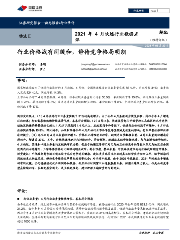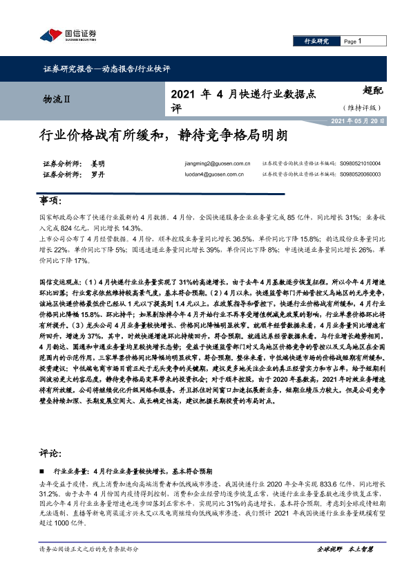 【国信证券】【20210520】2021年4月快递行业数据点评-7页