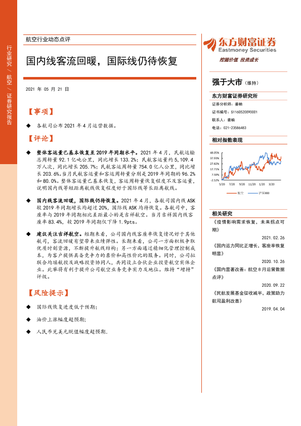 【东方财富证券】【20210521】航空行业动态点评:国内线客流回暖,国际线仍待恢复-8页