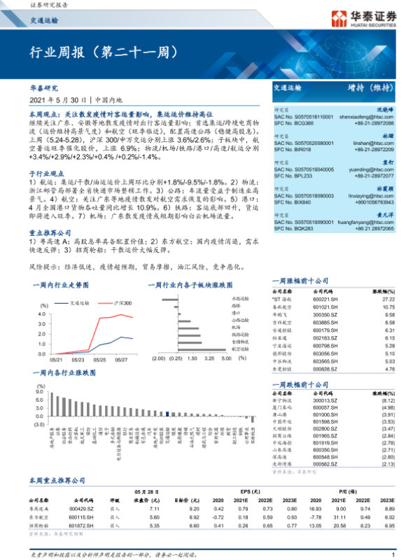 【华泰证券】【20210530】交通运输行业周报(第二十一周)-10页