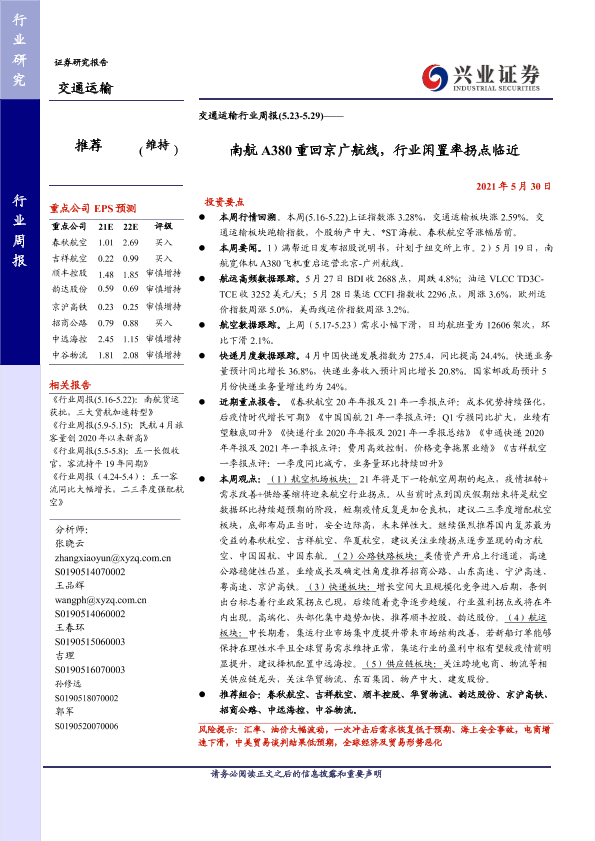 【兴业证券】【20210530】南航A380重回京广航线,行业闲置率拐点临近-18页