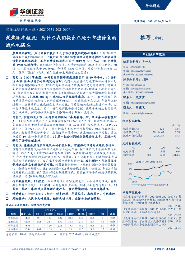【华创证券】【20210606】交通运输行业周报:聚焦顺丰控股:为什么我们提出正处于市值修复的战略机遇期-22页