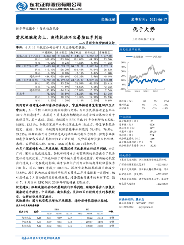 【东北证券】【20210617】5月航空经营数据点评:需求端继续向上,疫情扰动不改暑期旺季判断-3页