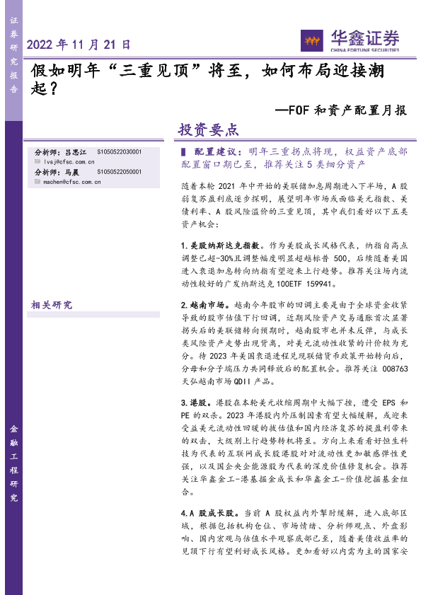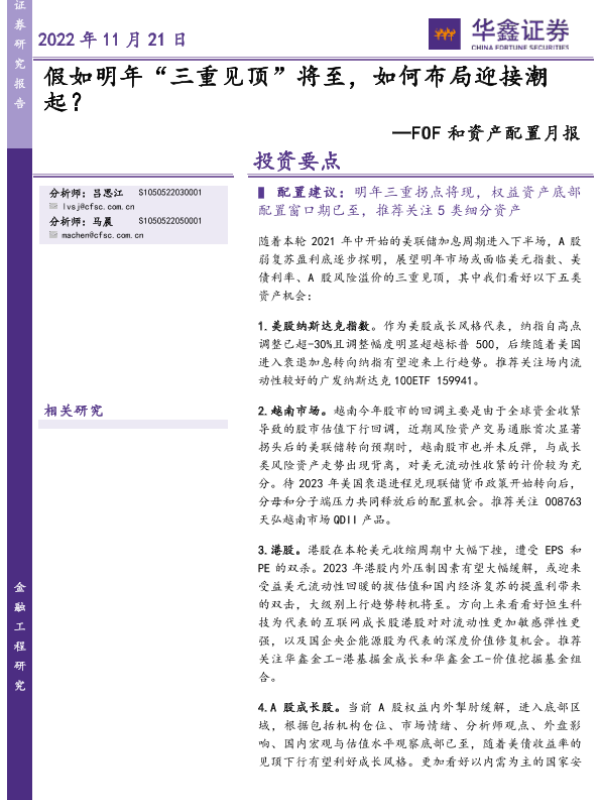 【华鑫证券】【20221121】FOF和资产配置月报:假如明年“三重见顶”将至,如何布局迎接潮起?-34页