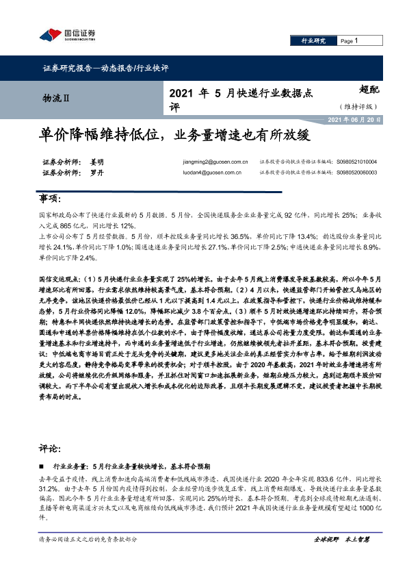 【国信证券】【20210620】2021年5月快递行业数据点评-7页