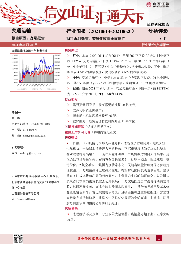 【山西证券】【20210620】交通运输行业周报:BDI再创新高,差异化收费全面推广-14页