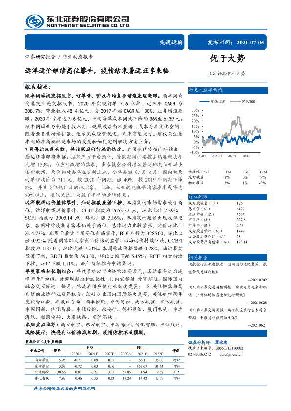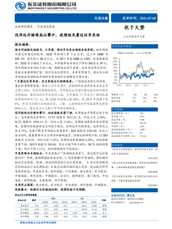 【东北证券】【20210705】交通运输:远洋运价继续高位攀升,疫情结束暑运旺季来临-16页
