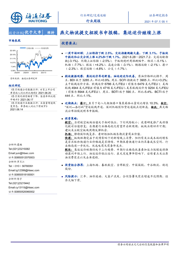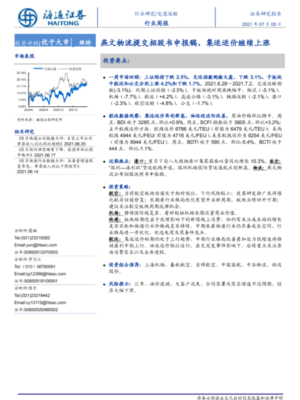 【海通证券】【20210705】交通运输行业周报:燕文物流提交招股书申报稿,集运运价继续上涨-9页