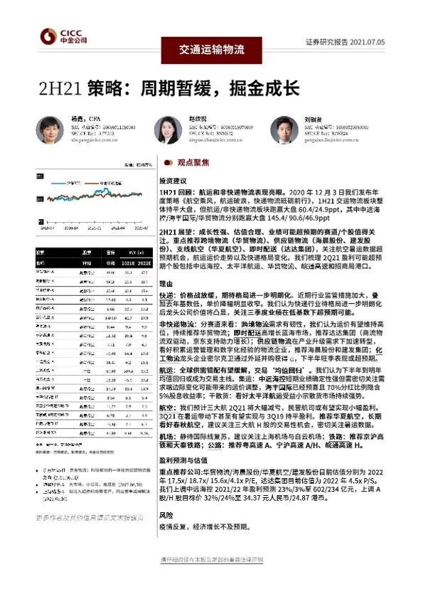 2H21策略 交通运输 周期暂缓 成长股 物流