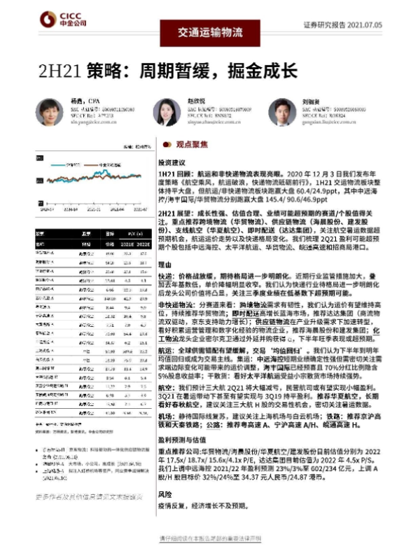 【中金公司】【20210705】交通运输物流2H21策略:周期暂缓,掘金成长-45页