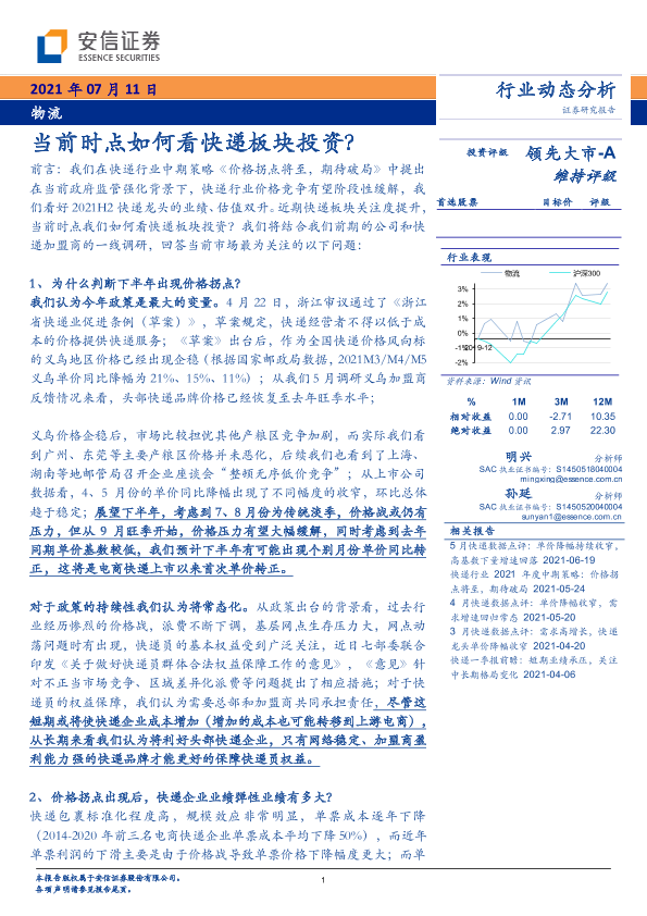 【安信证券】【20210711】当前时点如何看快递板块投资-5页