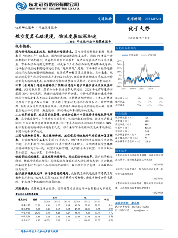 【东北证券】【20210711】2021年交运行业中期策略报告:航空复苏长路漫漫,物流发展纵深加速-36页