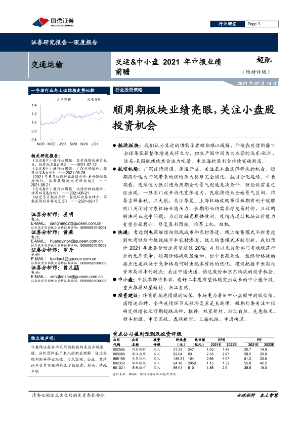 【国信证券】【20210714】交运&中小盘2021年中报业绩前瞻-13页