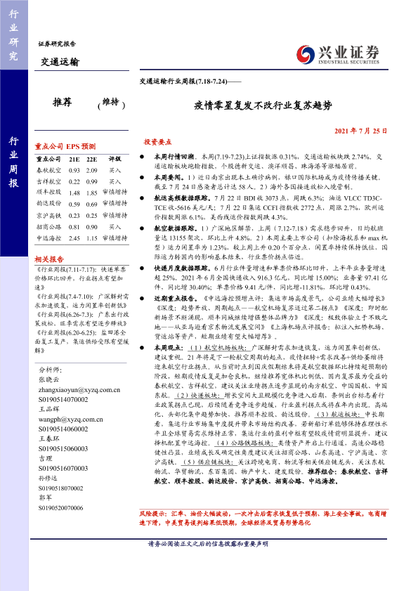 【兴业证券】【20210725】交通运输行业周报 疫情零星复发不改行业复苏趋势-20页