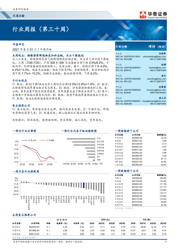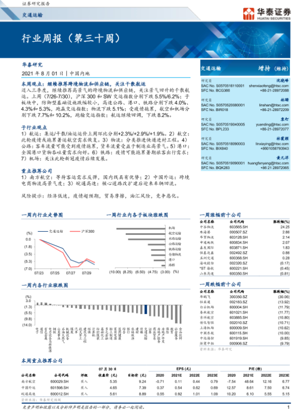 【华泰证券】【20210801】交通运输行业周报(第三十周)-10页