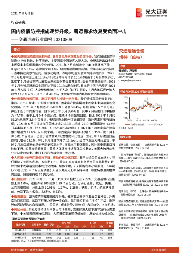 【光大证券】【20210808】国内疫情防控措施逐步升级,暑运需求恢复受负面冲击-9页