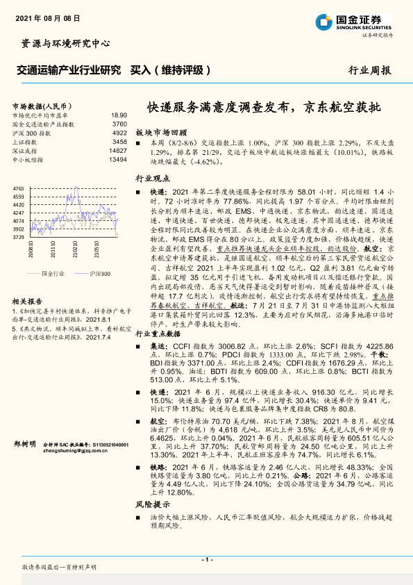 【国金证券】【20210808】交通运输产业行业研究:快递服务满意度调查发布,京东航空获批-14页