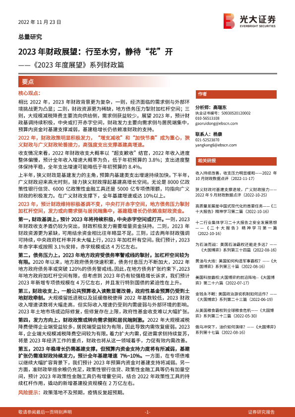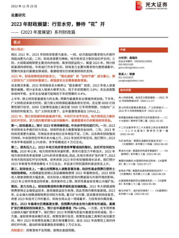 【光大证券】【20221123】《2023年度展望》系列财政篇:2023年财政展望,行至水穷,静待“花”开-22页