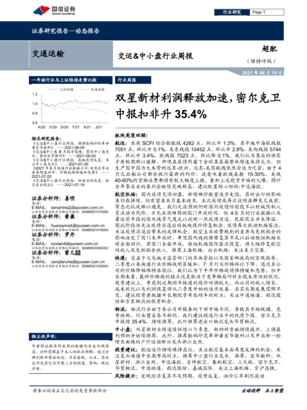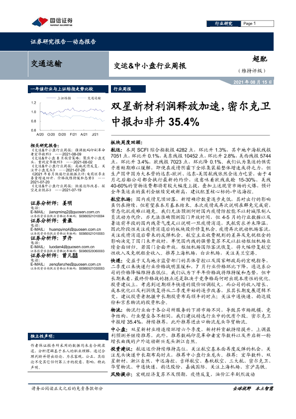 【国信证券】【20210815】交运&中小盘行业周报:双星新材利润释放加速,密尔克卫中报扣非升35.4%-21页