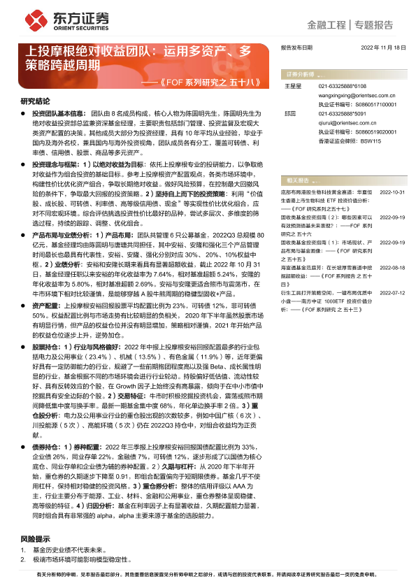 【东方证券】【20221118】《FOF系列研究之五十八》:上投摩根绝对收益团队,运用多资产、多策略跨越周期-15页
