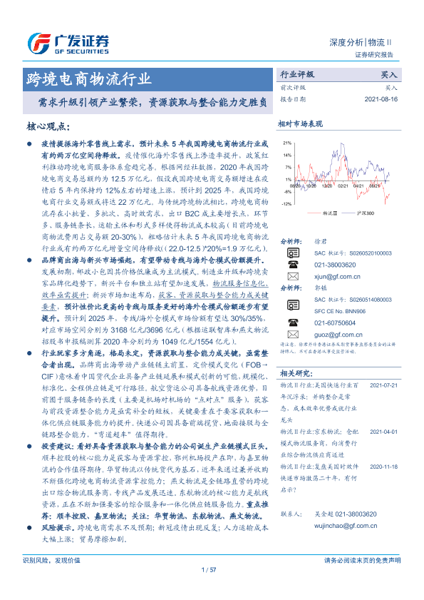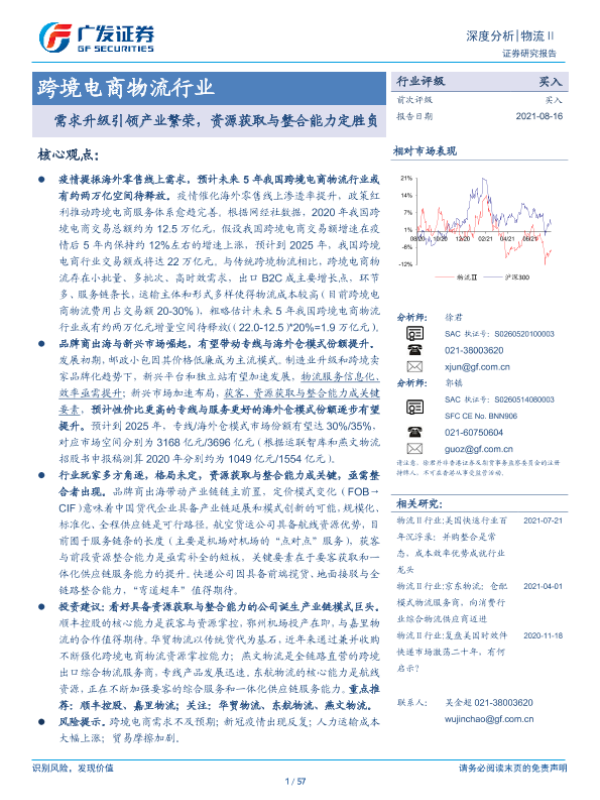 【广发证券】【20210816】跨境电商物流行业深度分析:需求升级引领产业繁荣,资源获取与整合能力定胜负-57页