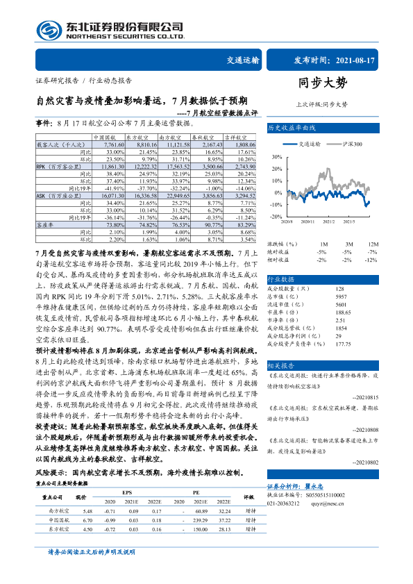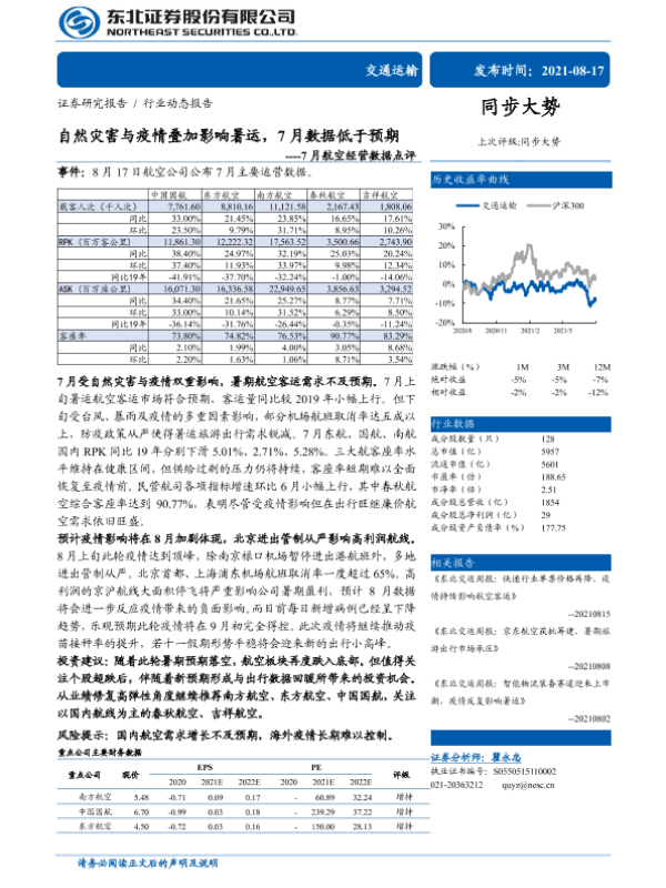 【东北证券】【20210817】7月航空经营数据点评:自然灾害与疫情叠加影响暑运,7月数据低于预期-3页