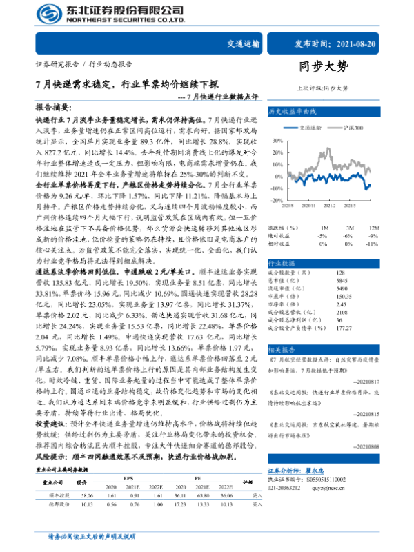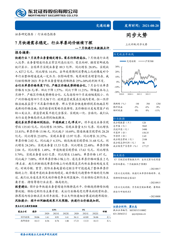【东北证券】【20210820】7月快递需求稳定,行业单票均价继续下探-8页