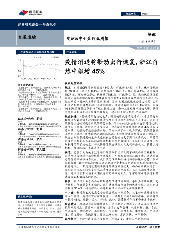 【国信证券】【20210822】交运&中小盘行业周报:疫情消退将带动出行恢复,浙江自然中报增45%-25页