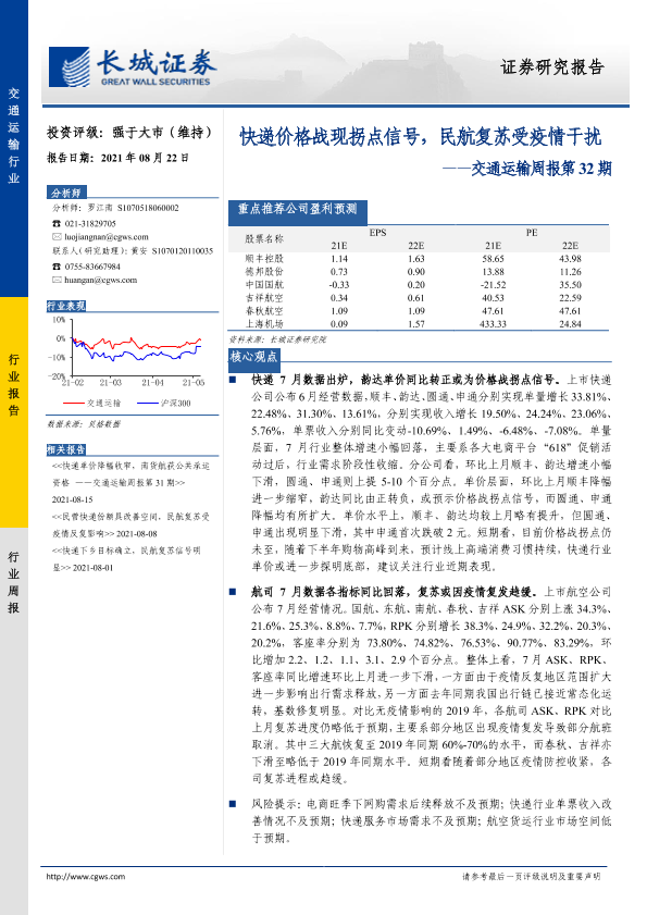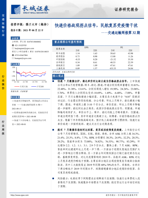 【长城证券】【20210822】快递价格战现拐点信号,民航复苏受疫情干扰-23页