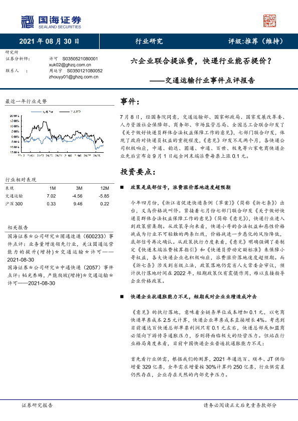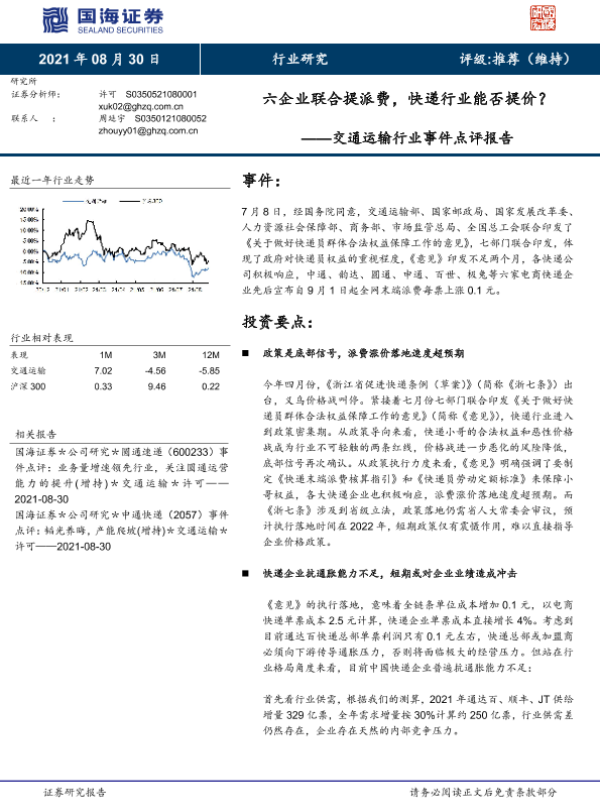 【国海证券】【20210830】六企业联合提派费,快递行业能否提价?-6页