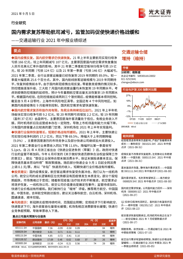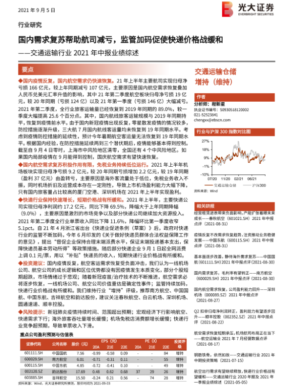 【光大证券】【20210905】交通运输行业2021年中报业绩综述-15页