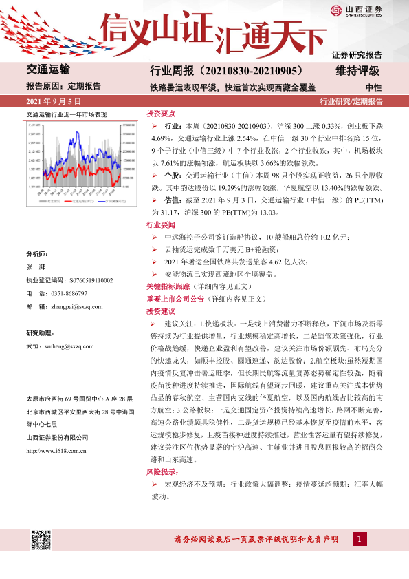 【山西证券】【20210905】交通运输行业周报:铁路暑运表现平淡,快运首次实现西藏全覆盖-14页